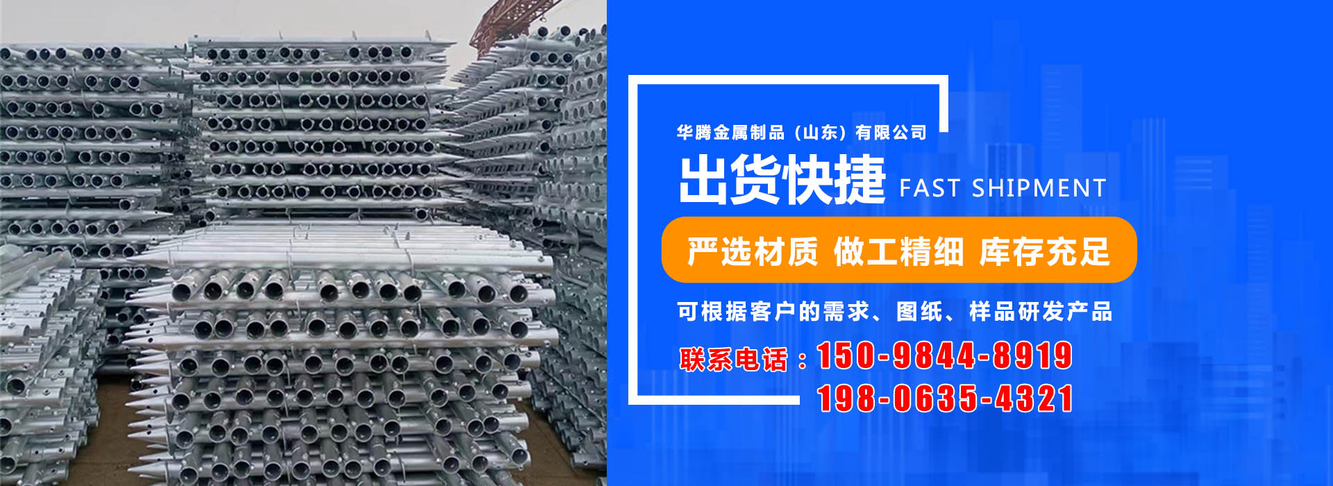華騰金屬制品 (山東) 有限公司是螺旋地樁公司,主要經(jīng)營螺旋地樁、光伏地樁等產(chǎn)品,品種規(guī)格齊全,并可根據(jù)客戶的需求、圖紙、樣品研發(fā)產(chǎn)品。